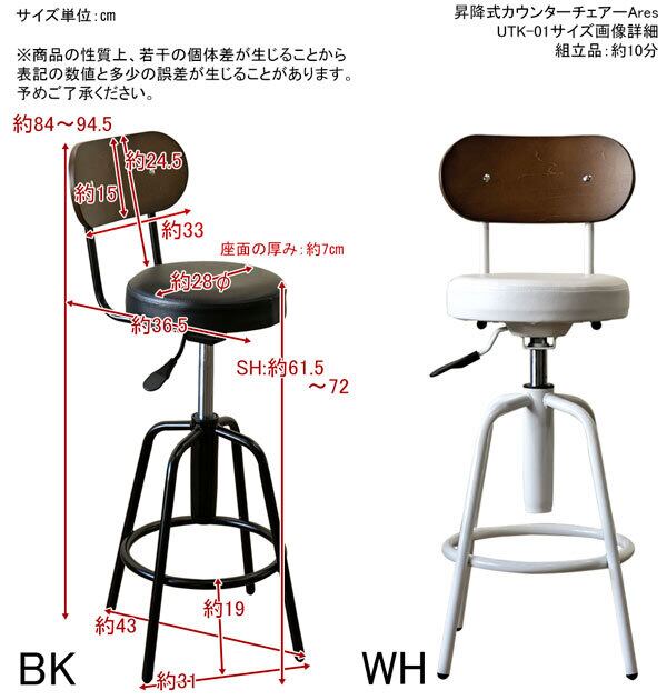 Ares 昇降式カウンターチェア BK/WH